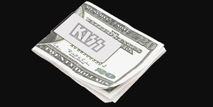 Parte da coleção Dress to Kill, com meias, isqueiro e gravata, o fã de Kiss pode também adquirir um clipe de dinheiro oficial da banda no site oficial.