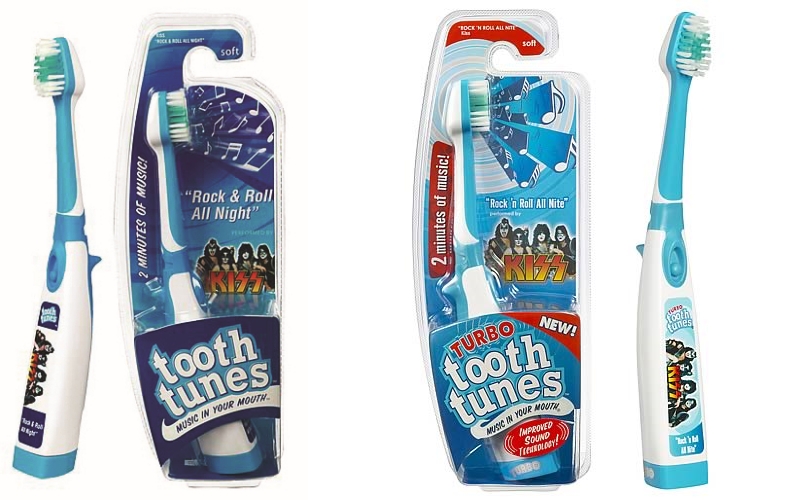 A escova de dentes da banda tocava a música “Rock and Roll All Nite” quando ligada. “As vibrações sonoras fluem das cerdas para os dentes – para que possa realmente ouvir música dentro da sua cabeça!”, dizia o anúncio (via Kiss Museum).