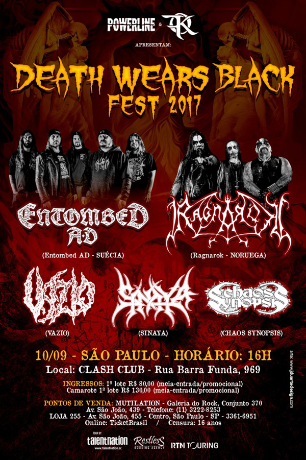 Além do grupo norueguês, a primeira edição do Death Wears Black Fest terá como atração principal o lendário Entombed AD, além das bandas brasileiras Sinaya, Vazio e Chaos Synopsis.