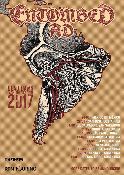 O Entombed AD, um dos principais representantes do death metal sueco, anunciou recentemente longa turnê pela América Latina. L-G Petrov (vocal), Olle Dahlstedt (bateria), Victor Brandt (baixo), Nico Elgstrand (guitarra) e Guilherme Miranda (guitarra) desembarcam com a turnê mundial do excelente novo álbum Dead Dawn.