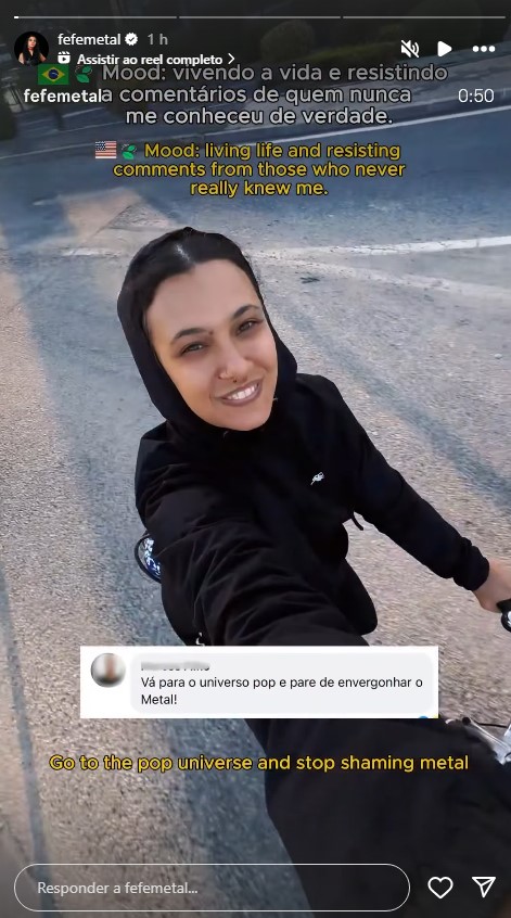 Mas como ninguém é de ferro, a artista usou a sua conta oficial no Instagram para responder um Tr00zão que pediu para ela parar de envergonhar o heavy metal.