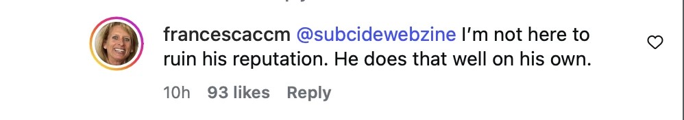Alguns internautas resolveram partir para cima de Francesca e um deles a chamou se ressentida e a acusou de querer arruinar a reputação de James.