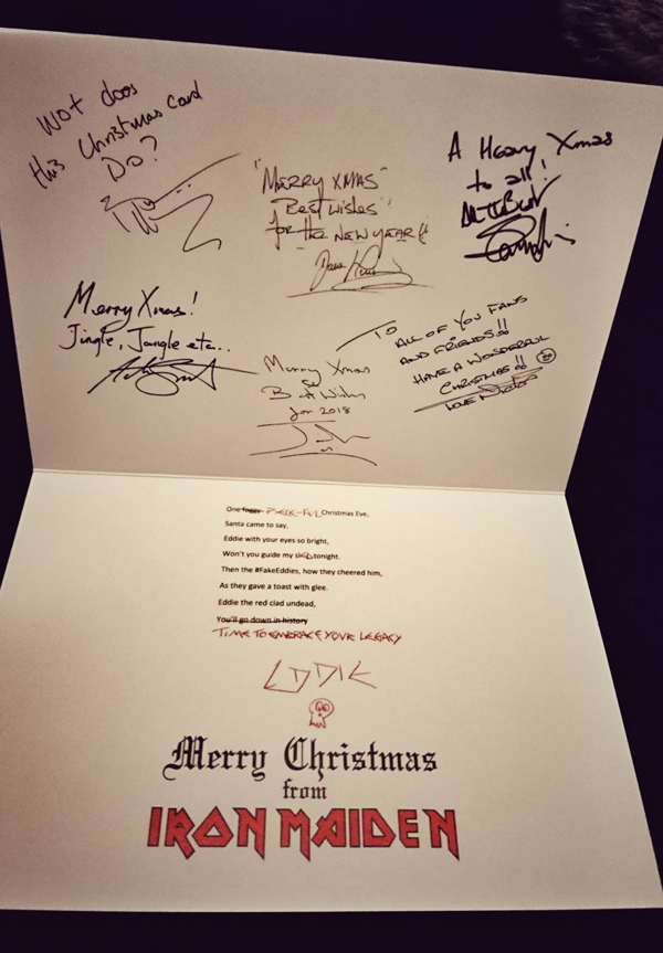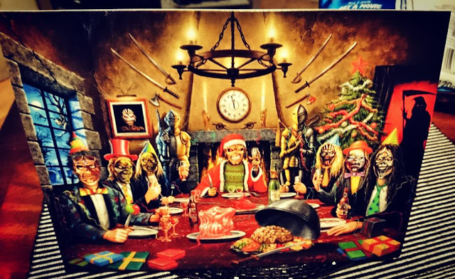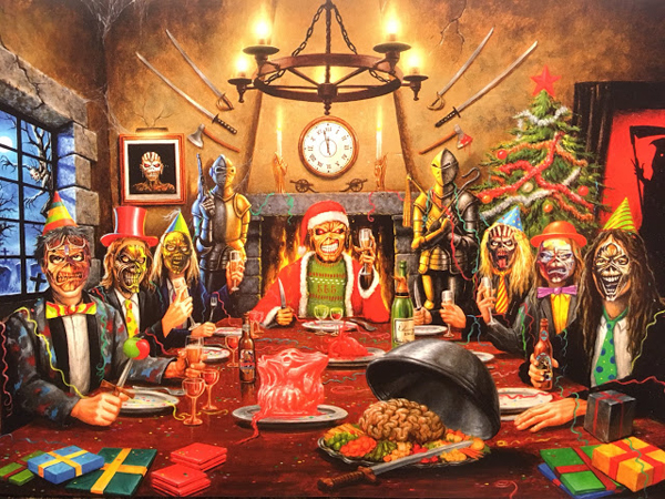 O Iron Maiden enviou aos membros de seu fã-clube oficial o já tradicional Christmas Card, com os desejos de boas festas. Em 2017 temos mais uma ilustração de Hervé Monjeaud que dessa vez retratou a ceia de natal da banda, com diversas referências à discografia da Donzela de Ferro. Confira as imagens abaixo.