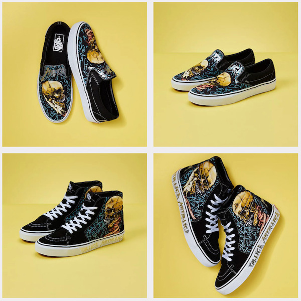 A coleção, que será lançada no dia 26 de julho, tem as artes inspiradas no trabalho do lendário artista gráfico Pushead. A venda será exclusiva via Vans Family e Metallica.com.