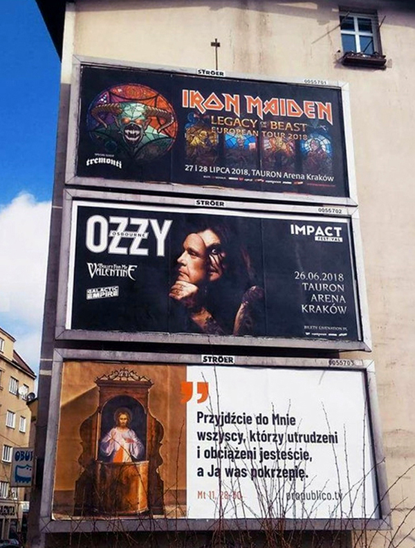 Além disso, em um outro local os outdoors promovendo os shows do Iron Maiden e de Ozzy Osbourne ganharam a companhia de outro com um trecho bíblico.