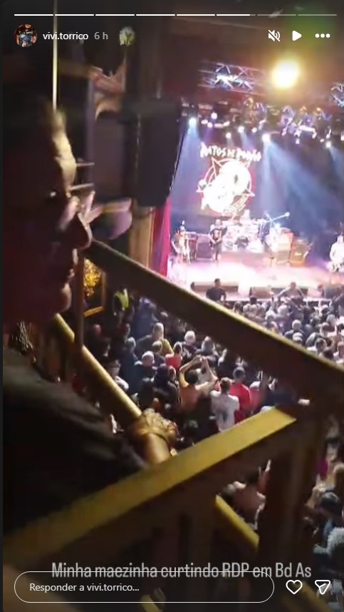 A esposa de João, Vivi Torrico, compartilhou via story um trecho da apresentação no qual mostra sua mãe observando a performance da banda e a insanidade dos fãs no mosh pit. Na legenda da publicação, ela escreveu: “Minha mãezinha curtindo RDP em Bd As”.